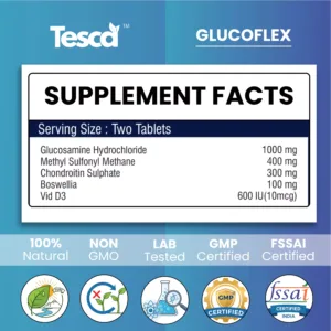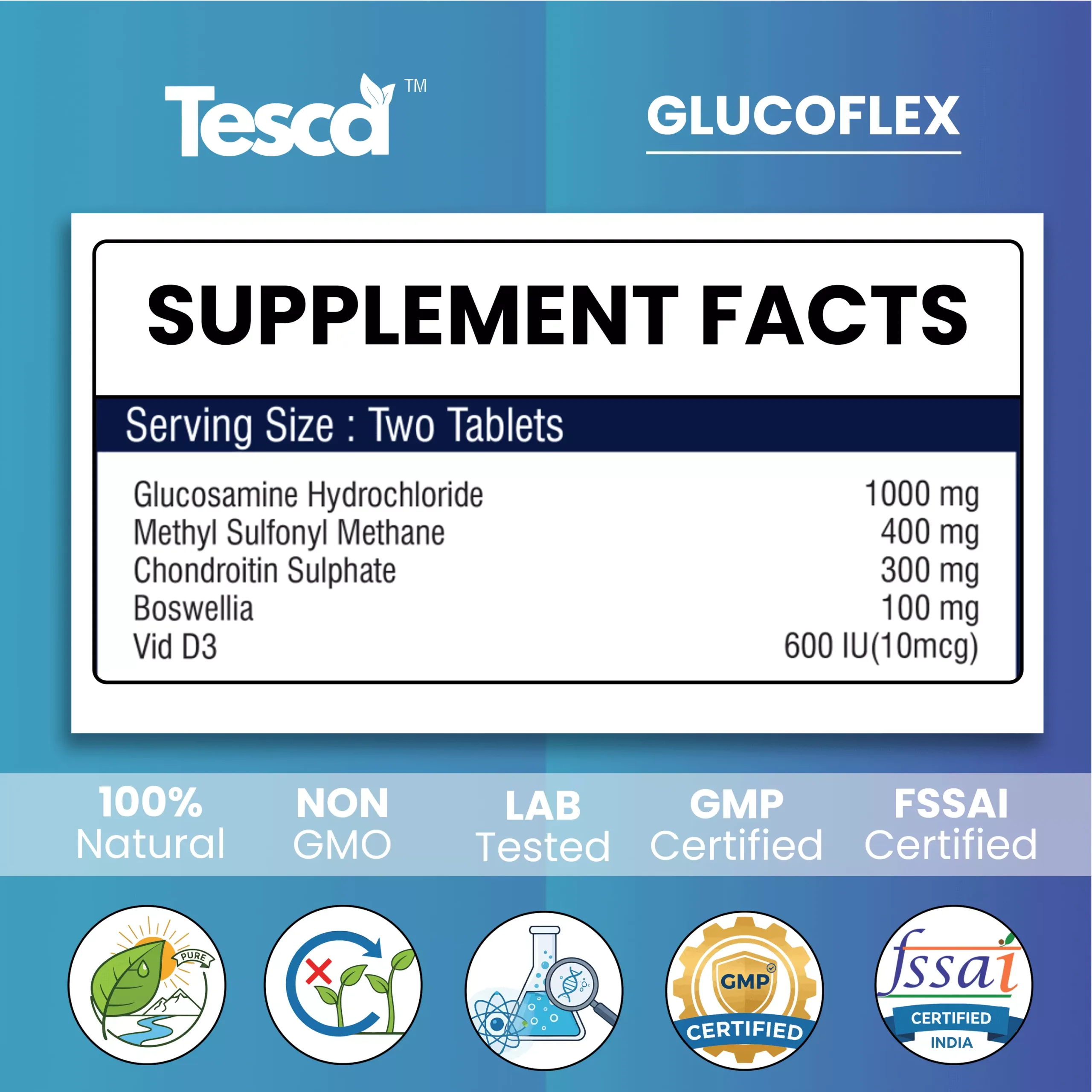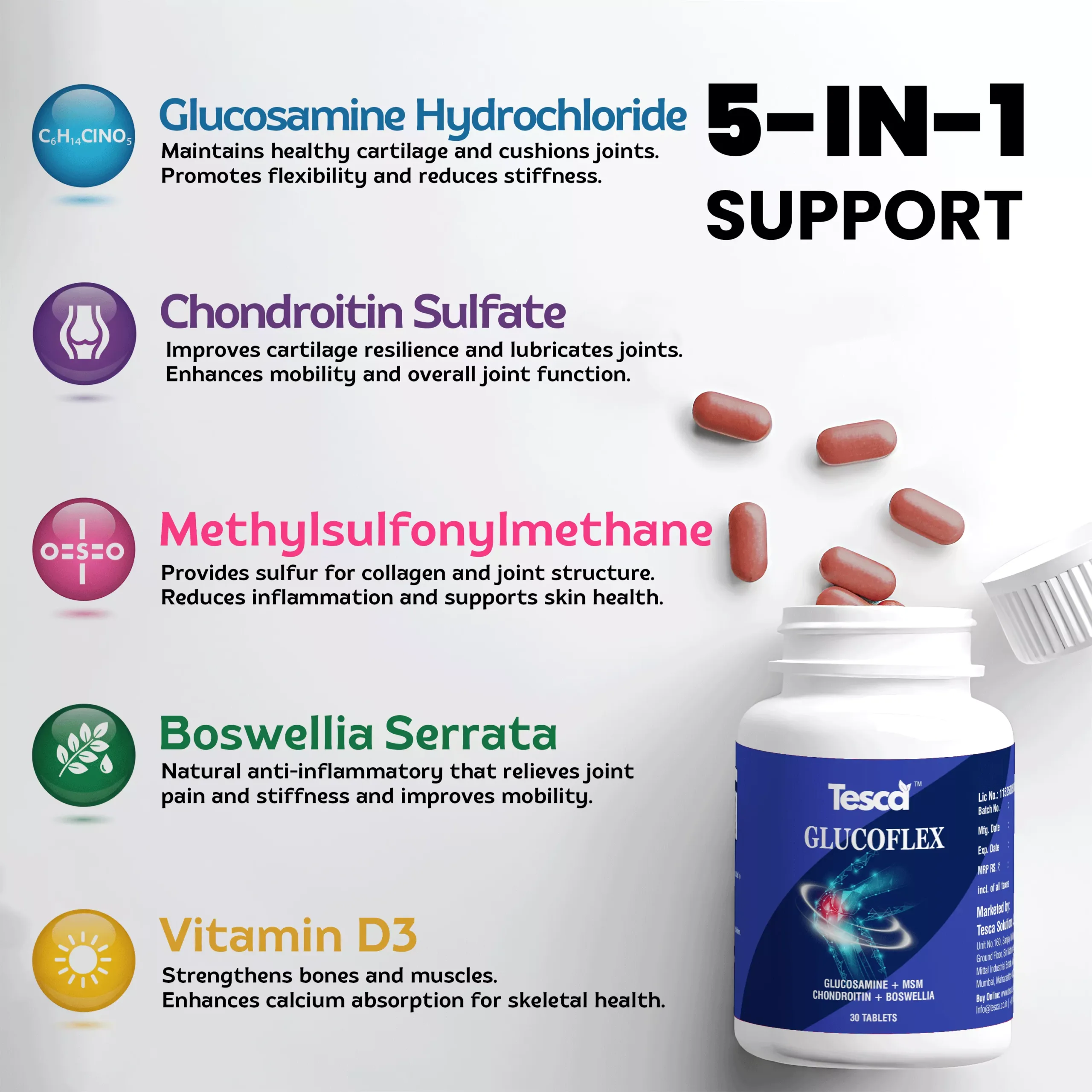 Includes Glucosamine HCl, MSM, Chondroitin, Boswellia, and Vitamin D3 for comprehensive joint support.